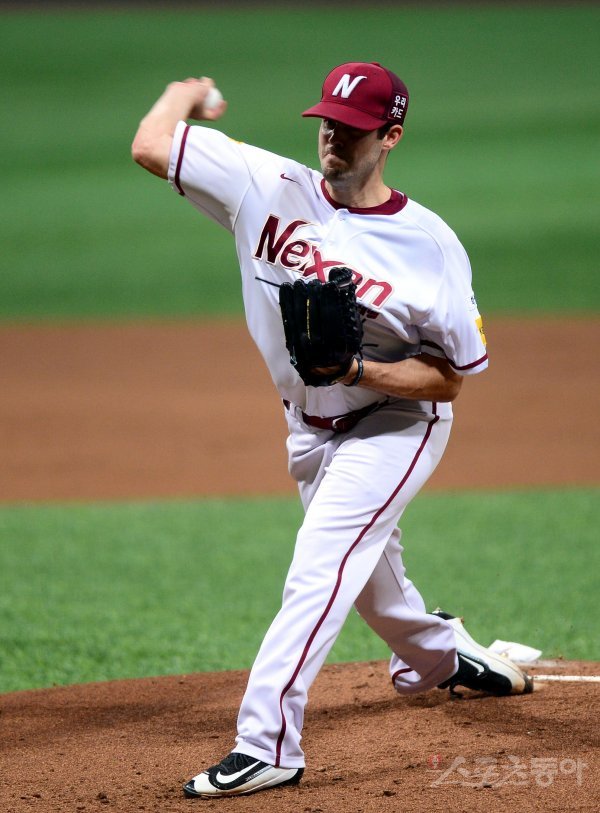 4일 서울 고척 스카이돔에서 ‘2017 타이어뱅크 KBO리그’ 넥센 히어로즈와 한화 이글스의 경기가 열렸다. 넥센 선발 투수 브리검이 힘차게 볼을 던지고 있다.