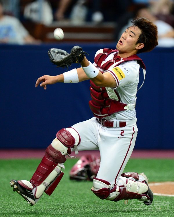 4일 서울 고척 스카이돔에서 ‘2017 타이어뱅크 KBO리그’ 넥센 히어로즈와 한화 이글스의 경기가 열렸다. 7회초 무사에서 한화 강경학의 파울 타구를 넥센 주효상이 잡아내고 있다.