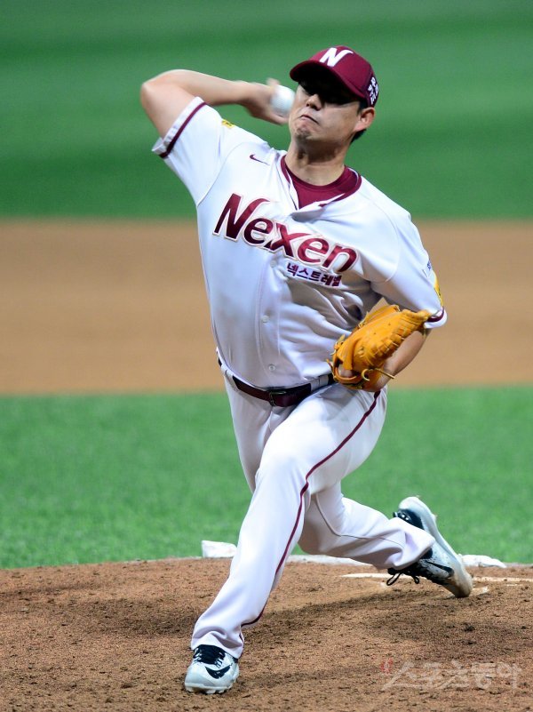4일 서울 고척 스카이돔에서 ‘2017 타이어뱅크 KBO리그’ 넥센 히어로즈와 한화 이글스의 경기가 열렸다. 7-5로 앞선 9회초 한화 공격 때 넥센 마무리 김상수가 구원 등판해 볼을 던지고 있다.