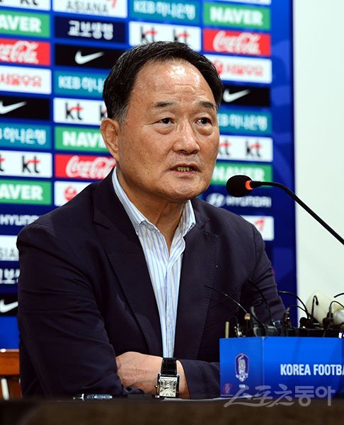 김호곤 대한축구협회 기술위원장이 4일 파주 NFC에서 기술위원회를 마친 뒤 결과를 발표하고 있다. 신임 국가대표팀 사령탑은 신태용 감독이었다. 파주 | 김민성 기자 marineboy@donga.com