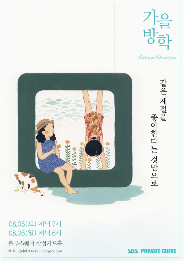 가을방학은 실력파 송라이터 정바비와 보컬리스트 계피로 구성된 듀오로 ‘가끔 미치도록 네가 안고 싶어 질 때가 있어’, ‘취미는 사랑’, ‘이별앞으로’ 등 깊이있는 가사와 서정적인 멜로디로 지금까지 꾸준한 사랑을 받고 있다. 가을방학 새 앨범 ‘마음집’ 발매 기념 콘서트 “같은 계절을 좋아한다는 것만으로”는 오늘 낮 12시 인터파크를 통해 예매 가능하다.