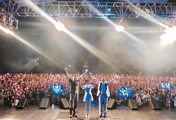 가수 싸이, 아이유, 이승기가 \'특급 선후배 우정\'을 과시했다.