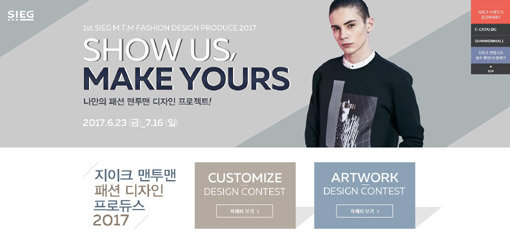 신원 ‘지이크’가 7월16일까지 ‘캐주얼 티셔츠 디자인 공모전’을 연다. 소비자가 직접 ‘지이크’ 맨투맨 티셔츠의 아트웍을 디자인하는 ‘아트웍 콘테스트’와 홈페이지에서 색상·원단·패턴 등을 골라 손쉽게 디자인 할 수 있는 ‘커스터마이징 콘테스트’로 구성됐다. 공모전 참여는 홈페이지(contest.sieg.co.kr)를 통해 가능하다. 최종 선발된 아트웍 작품은 내부 심사를 통해 ‘2017 가을·겨울 리미티드 에디션’으로 출시 예정이다.