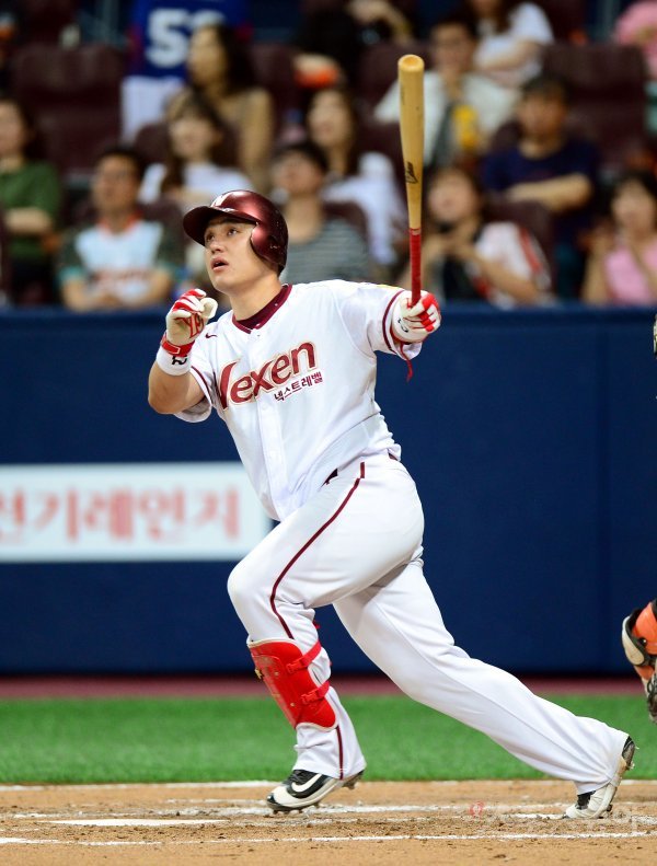5일 서울 고척 스카이돔에서 ‘2017 타이어뱅크 KBO리그’ 넥센 히어로즈와 한화 이글스의 경기가 열렸다. 2회말 2사 1루에서 넥센 박동원이 한화 선발 배영수를 상대로 좌월 동점 투런 홈런을 쏘아올리고 있다.