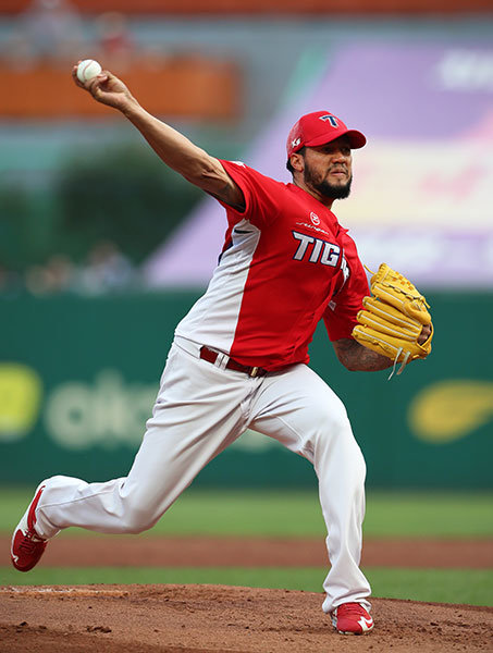 올 시즌 KIA의 바람이 거세게 일고 있다. 여기저기 신기록 행진에 너도나도 역사에 도전하고 있다. 그 중 빼놓을 수 없는 인물이 있다. 바로 올 시즌 무패행진을 달리고 있는 외국인 에이스 투수 헥터 노에시(30)다. 해태 시절이던 1990년 선동열 이후 명맥이 끊긴 타이거즈 20승 투수로 27년 만에 이름을 올릴 가능성이 무르익고 있어 더욱 주목된다.