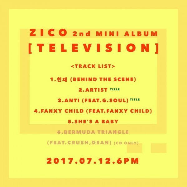 가수 지코가 ‘Television’ 트랙리스트를 공개했다.