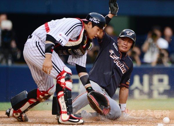 9일 서울 잠실야구장에서 ‘2017 타이어뱅크 KBO리그’ LG트윈스와 한화이글스의 경기가 열렸다. 5회초 2사 3루에서 한화 김원석이 폭투를 틈타 홈까지 쇄도해 세이프 되고 있다.
