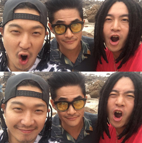 공개한 사진에는 스컬과 하하, 배정남이 함께 하고 있다. 사진 속 하하와 스컬은 모두 레게 머리를 하고 있고, 배정남은 프린팅 셔츠에 컬러 선글라스를 매치하여 스타일리시함을 한껏 뽐냈다.