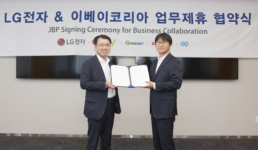 이베이코리아와 LG전자가 맞손을 잡았다. 최근 서울 역삼동 소재 이베이코리아 본사에서 업무 협약을 체결한 것. 이번 협약으로 이베이코리아는 신제품부터 프리미엄 라인까지 다양한 LG전자 상품들을 G마켓·옥션·G9에서 보다 좋은 조건으로 선보일 수 있게 됐다. 신제품 출시 시점에 맞춰 온라인 고객만을 위한 프로모션을 진행하고, 빅데이터 등을 활용해 차별화된 판촉 활동을 한다는 게 회사 측 계획이다. 또 LG전자는 이베이코리아를 통해 온라인 고객에 집중하고 맞춤형 마케팅을 강화할 예정이다.