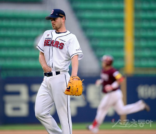 11일 잠실야구장에서 ‘2017 타이어뱅크 KBO 리그’ 넥센히어로즈와 두산베어스의 경기가 열렸다. 선발 투수로 등판한 두산 보우덴이 2회초 2사 넥센 박동원에게 솔로 홈런을 허용한 후 아쉬워하고 있다.