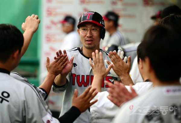 11일 인천 SK행복드림구장에서 ‘2017 타이어뱅크 KBO리그’ SK 와이번스와 LG 트윈스의 경기가 열렸다. 4회초 1사에서 LG 정성훈이 SK 선발 다이아몬드를 상대로 우월 솔로 홈런을 쏘아올린 뒤 동료들의 환영을 받고 있다.