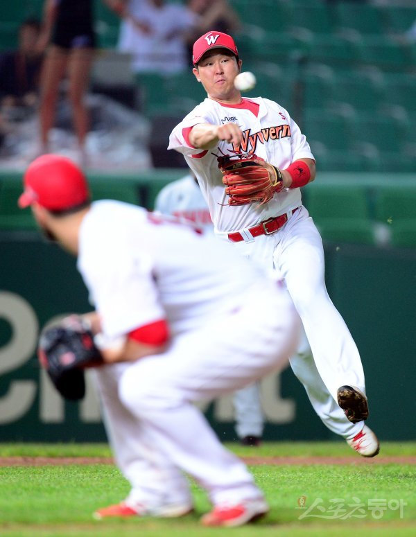 11일 인천 SK행복드림구장에서 ‘2017 타이어뱅크 KBO리그’ SK 와이번스와 LG 트윈스의 경기가 열렸다. 6회초 1사에서 LG 이형종의 타구를 SK 최정이 잡아 1루로 송구하고 있다.