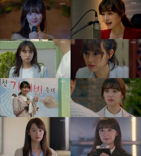 극 초반 김지원은 뉴스데스크에 앉고 싶었지만, 현실은 백화점 인포 데스크에 있는 최애라로 분했다. 그는 마이크를 잡는 순간마다 쫄깃한 마이크 본능을 펼치며 안방극장에 하드캐리를 선사했다. 이 때 김지원은 실제 아나운서를 방불케 하는 완벽한 발음으로 감탄을 자아냈다. 또한, 그는 망가짐을 불사한 코믹 연기로 과감한 연기 변신에 성공, 많은 이들의 \'최애캐\'로 등극했다.