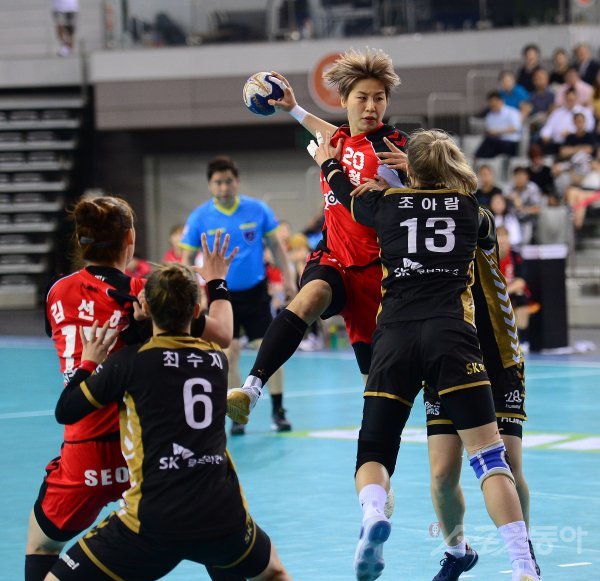 2017 SK핸드볼 코리아리그 여자부 챔피언결정전 최종전 서울시청과 SK슈가글라이더즈 경기가 12일 서울 송파구 SK핸드볼 경기장에서 열렸다. 서울시청 권한나가 슛을 날리고 있다.