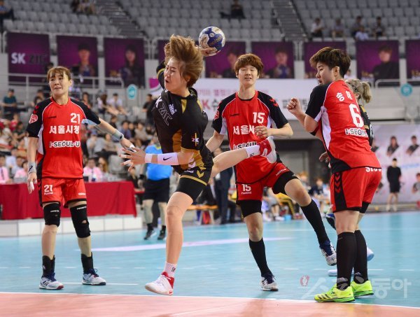 2017 SK핸드볼 코리아리그 여자부 챔피언결정전 최종전 서울시청과 SK슈가글라이더즈 경기가 12일 서울 송파구 SK핸드볼 경기장에서 열렸다. SK슈가글라이더즈 김온아가 슛을 날리고 있다.