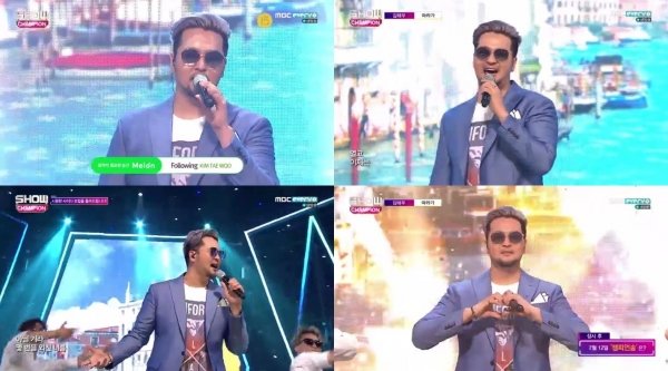 12일 오후 방송된 MBC MUSIC, MBC every1 '쇼 챔피언'에서 김태우는 '따라가'를 열창하며 여전한 폭발적 고음을 자랑했다.