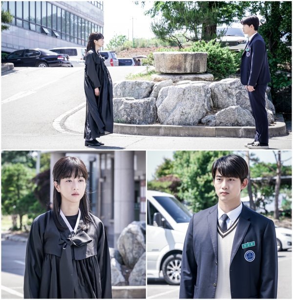 단정하게 교복을 차려입은 옥택연과 검은 상복을 입고 있는 처연한 모습의 서예지가 인적 드문 곳에서 차마 말을 잇지 못한 채 말없이 서로를 바라보는 모습을 선보인 것. 극중 한상환이 충격적인 사건을 겪은 임상미를 찾아 간 후 자책감과 착잡함이 뒤섞인 감정을 드러내는 장면을 통해서다. 옥택연은 차마 말문을 열지 못하는 아픈 마음을 표정으로, 서예지는 원망감이 가득한 마음을 파르르 떨리는 눈빛으로 표현, 이목을 사로잡고 있다. 이와 관련 과연 서예지에게 일어난 충격적인 사건은 무엇일지, 옥택연에게는 또 어떤 일이 일어났던 것인지 관심이 모아진다.