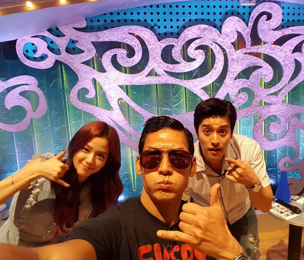 공개한 사진은 MBC \'복면가왕\' 스튜디오에서 그룹 블랙핑크의 지수와 유키스의 일라이와 함께 촬영을 하고 찍은 인증샷이다.