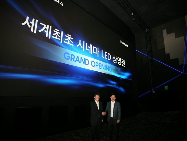 ‘시네마 LED’를 간단히 설명하자면 영사기가 없는 영화관이라고 할 수 있다. 기존 프로젝터 영사기가 아닌 LED 캐비닛 96개를 활용한 방식이다. 가로 10.3m의 크기로 영화에 최적화된 4K(2096X2160) 해상도를 자랑한다. 또한 세계 최초로 디지털 시네마 표준 규격인 DCI(Digital Cinema Initiatives)인증을 획득해 100% 이상의 색표현력(DCI-P3 기준)과 보안에 대한 기준을 인정 받았다.