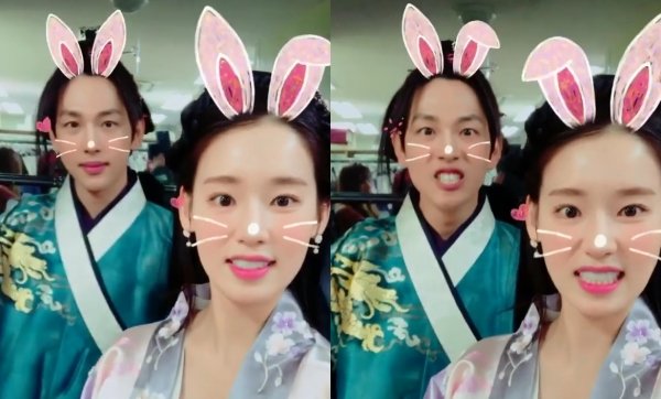 공개된 영상 속 두 사람은 카메라 어플을 이용해 상큼 발랄한 토끼로 변신한 모습. 하얀 피부와 큰 눈으로 완벽한 케미를 보여줬다. 특히, 똑같은 표정을 지어 훈훈한 분위기를 자아냈다.