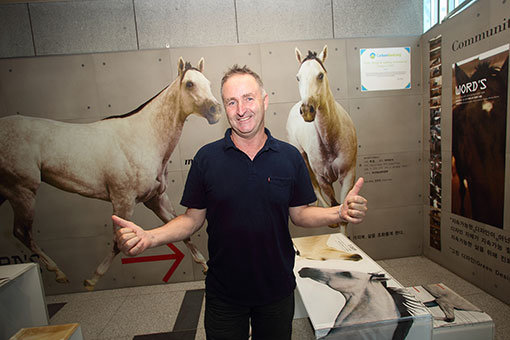 7월 9일 렛츠런파크 부산경남에서 열린 제13회 부산광역시장배에서 상반기 최대이변을 만들며 우승한‘아임유어파더’의 조교사 데이비드 밀러. 열정과 신뢰로 스태프의 마음을 하나로 모은 것이 우승의 원동력이다. 사진제공 ㅣ 한국마사회