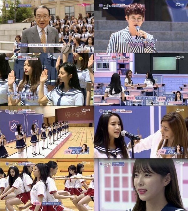 이날 방송에서는 41명의 학생들이 노력으로 발전해나가는 걸그룹 전문 교육 기관 ‘아이돌학교’에 입학하는 과정이 그려졌다. 먼저 신입생들은 한 명씩 무인 입학 접수처에 들러 자기 소개의 시간을 가졌다. 이후 하나 둘 교실에 모여든 학생들은 학년이 바뀌며 첫 교실에 들어선 학생들처럼 수줍은 인사를 나누다가도, 폭풍 친화력으로 금세 가까워졌다. 입학생 중에는 YG 6년차 연습생 출신의 이서연, JYP 연습생 출신 나띠, 박지원, ‘프로듀스101’ 출신 이해인 등 낯익은 얼굴들이 등장해 이목을 집중시키기도 했다.