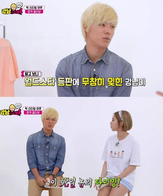 녹화에서 강남은 가수 싸이와 톱스타의 콜라보를 살펴보던 중 '강남스타일' 노래에 얽힌 웃픈 사연을 밝혔다. 그는 "KBS2 '해피투게더'에 출연해 입담으로 이틀 동안 포털 실시간 검색어를 장악했었다. 그런데 3일째부터 '강남'이 아닌 '강남 스타일'이 실검 1위더라. 내가 옷을 잘 입었나 생각했다. 그러나 강남스타일이 발매된 것이었다"며 "절묘한 타이밍에 나는 무참히 잊혔다. 좀만 있다가 발표하시지" 라고 고백했다. 이어 "그래도 강남스타일' 노래 좋아한다. 싸이형이랑 콜라보 하고 싶다"며 애정을 드러내 웃음을 자아냈다.