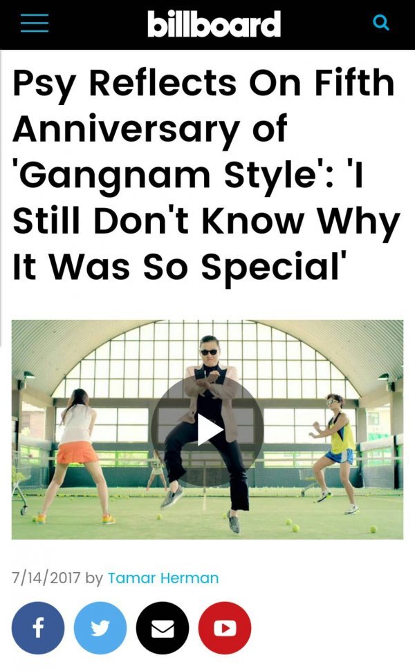 미국 빌보드가 싸이의 ‘강남스타일’ 발매 5주년을 기념해 진행한 인터뷰를 전격 공개했다.
