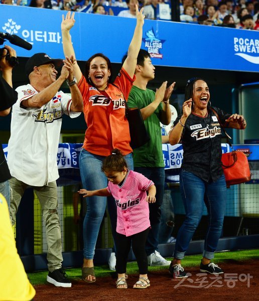 15일 대구 삼성라이온즈파크에서 ‘2017 타이어뱅크 KBO리그 올스타전’이 열렸다. 5회말이 끝난 후 열린 홈런 레이스 결승전에서 나눔팀 한화 로사리오가 8개를 치며 우승과 함께 140m로 비거리상까지 수상했다. 로사리오의 가족들이 열정적인 응원을 펼치고 있다. 대구 | 김진환 기자 kwangshin00@donga.com