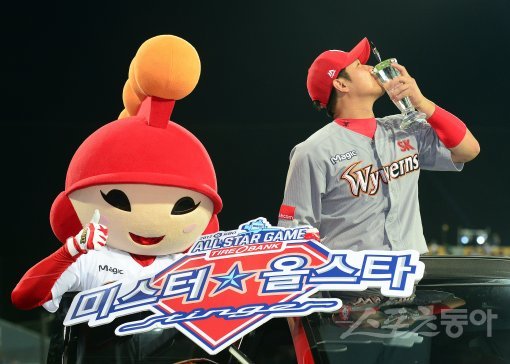15일 대구 삼성라이온즈파크에서 열린 ‘2017 타이어뱅크 KBO리그 올스타전’에서 드림팀이 13-8로 승리했다. 경기 후 2홈런 3타점으로 미스터 올스타에 선정된 SK 최정이 트로피에 키스를 하고 있다. 대구 | 김진환 기자 kwangshin00@donga.com