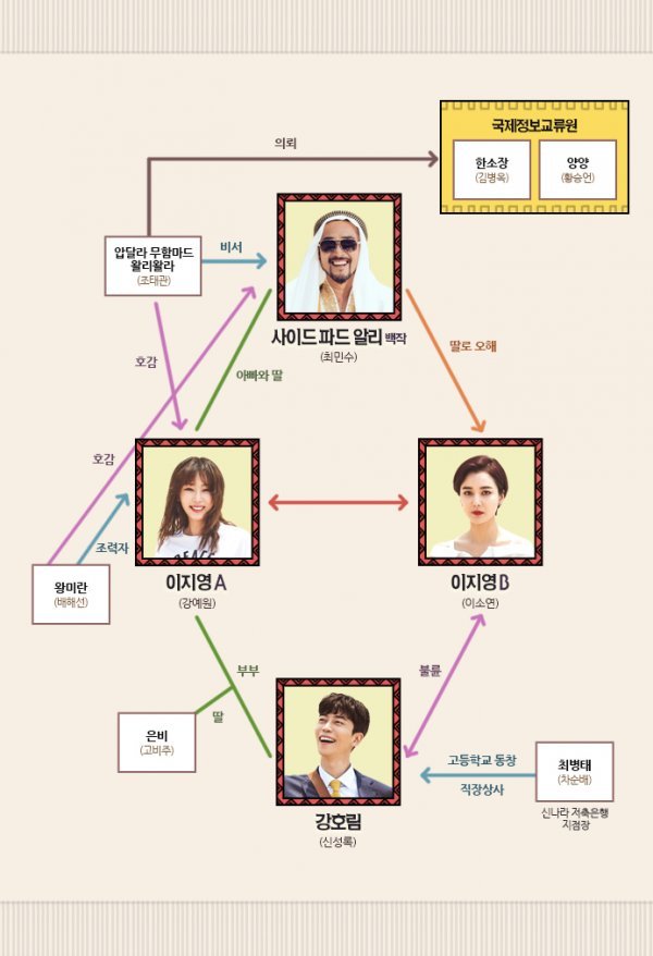 먼저 1970년대 후반 중동으로 건너가 작은 왕국의 ‘사이드 파드 알리’ 백작이 된 ‘장달구’(최민수)는 재산을 지키기 위해 35년만에 딸을 찾게 된다. 이러한 백작의 ‘딸 찾기 대작전’은 드라마 속 가장 큰 꿀잼 포인트가 될 것을 예고하며 궁금증을 불러일으키고 있다. 하지만 인물관계도 속 백작은 ‘이지영B’를 딸로 오해하고 있어 과연 그는 자신의 진짜 딸을 만나 눈물(?) 나는 부녀상봉을 이뤄낼 수 있을지 주목된다.