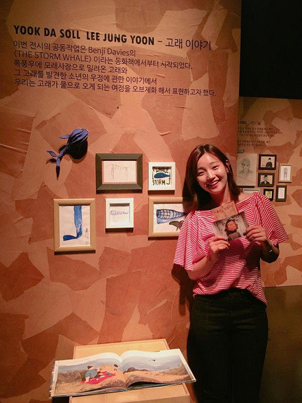 공개한 사진엔 박소담이 전시를 관람한 인증샷을 찍은 모습. 옅은 메이크업에 레드색의 스트라이프 블라우스 그리고 블랙 스키니진을 매치하여 수수하면서도 청초한 매력을 과시했다. 특히 그녀의 밝은 미소와 광채 나는 피부가 돋보인다.