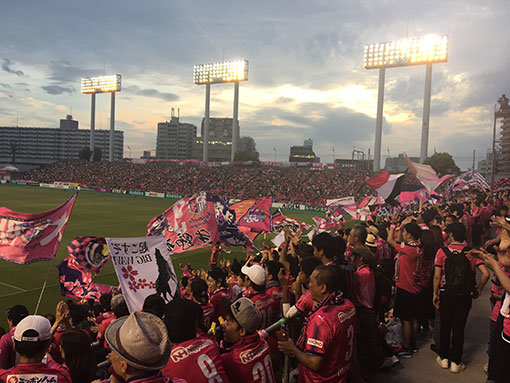 세레소의 홈구장 킨쵸 스타디움은 약 2만명을 수용할 수 있는 아담한 축구 전용 구장이다. 그러나 경기장을 가득 메운 2만명의 관중들은 원정팀을 위압할 정도의 압도적인 분위기를 만들어냈다. 스탠딩으로 이루어진 N석은 온전히 세레소를 응원할 최적의 무대를 만들었다.
