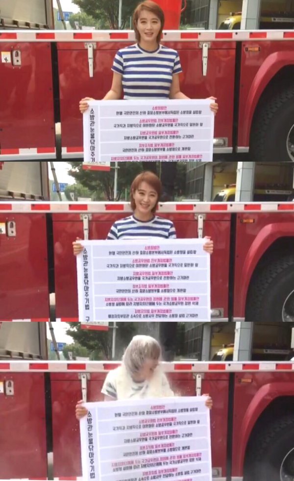 김혜수의 소속사 호두앤뉴 측은 18일 김혜수의 캠페인 동참 영상을 공개했다. 영상 속 김혜수는 소방공무원 처우 개선의 필요성을 강조한 후 환하게 웃으며 밀가루를 맞았다. 그는 다음 주자로 영화 ‘차이나타운’에 함께 출연했던 박보검을 지목했다.