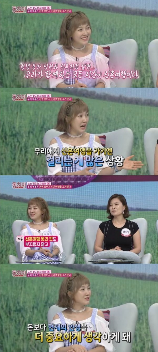 가수 자두가 목회자 남편과 결혼 당시 돈이 없어 신혼여행을 포기해야 했던 일화를 공개했다.