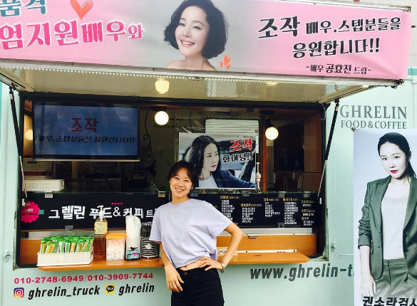 공개된 사진 속에는 엄지원의 드라마 촬영장을 찾은 공효진의 모습이 담겼다. 공효진은 면 티셔츠와 블랙 팬츠를 매치해 자연스러우면서도 스타일리시한 면모를 뽐냈다. 공효진의 뒤로는 그가 엄지원을 위해 보낸 커피차가 자리해 있어 훈훈함을 자아냈다.