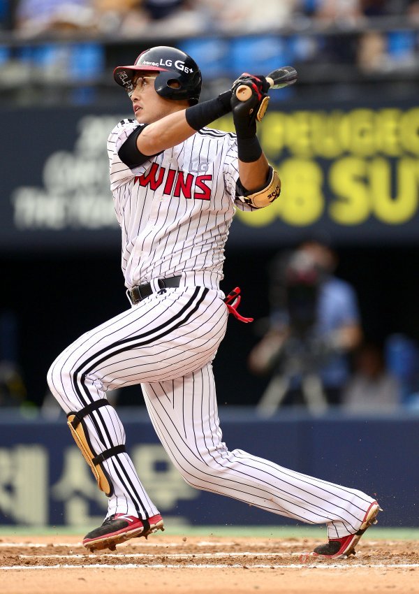 18일 잠실야구장에서 ‘2017 타이어뱅크 KBO 리그’ kt위즈와 LG트윈스의 경기가 열렸다. 2회말 1사 1루 LG 채은성이 선제 1타점 좌전 3루타를 치고 있다.