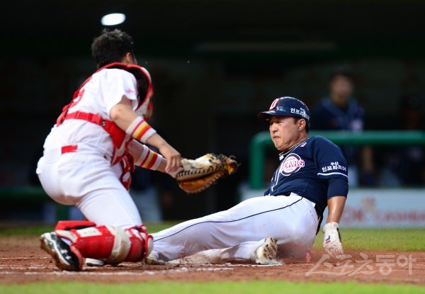 18일 인천 SK행복드림구장에서 ‘2017 타이어뱅크 KBO리그’ SK 와이번스와 두산 베어스의 경기가 열렸다. 6회초 1사 3루에서 두산 최주환의 내야 땅볼 때 3루 주자 김인태가 득점에 성공하고 있다.
