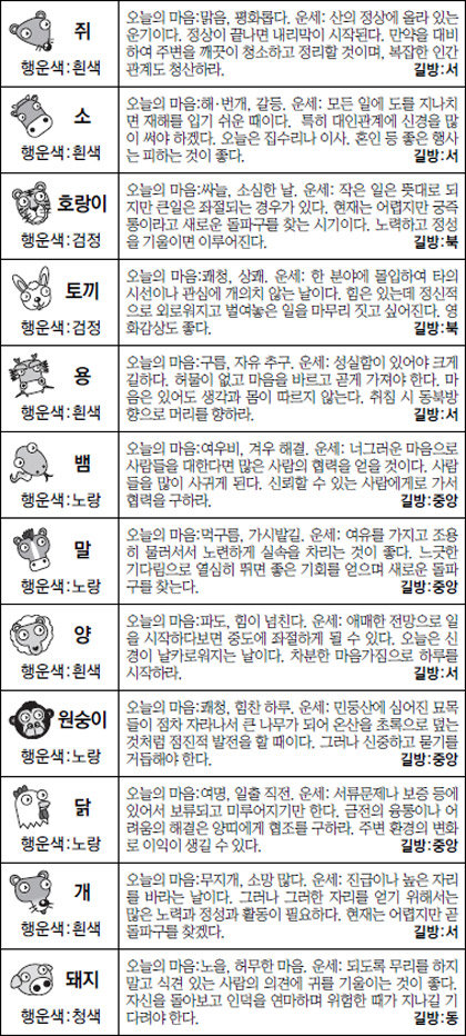■ 오늘의 운세|박경호의 운수 좋은 날