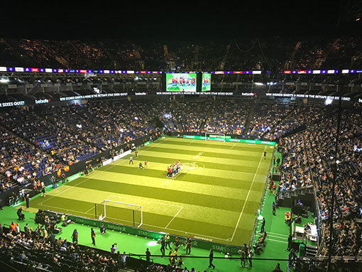 14일부터 17일까지 영국 런던 그리니치에서 벌어진 이색 축구대회 스타 식스. 6명씩 맞붙는 미니 축구대회에 세계축구의 전설들이 참가해 화제를 모았다. 사진은 대회가 열린 O2아레나 경기장 전경. 런던 | 허유미 통신원