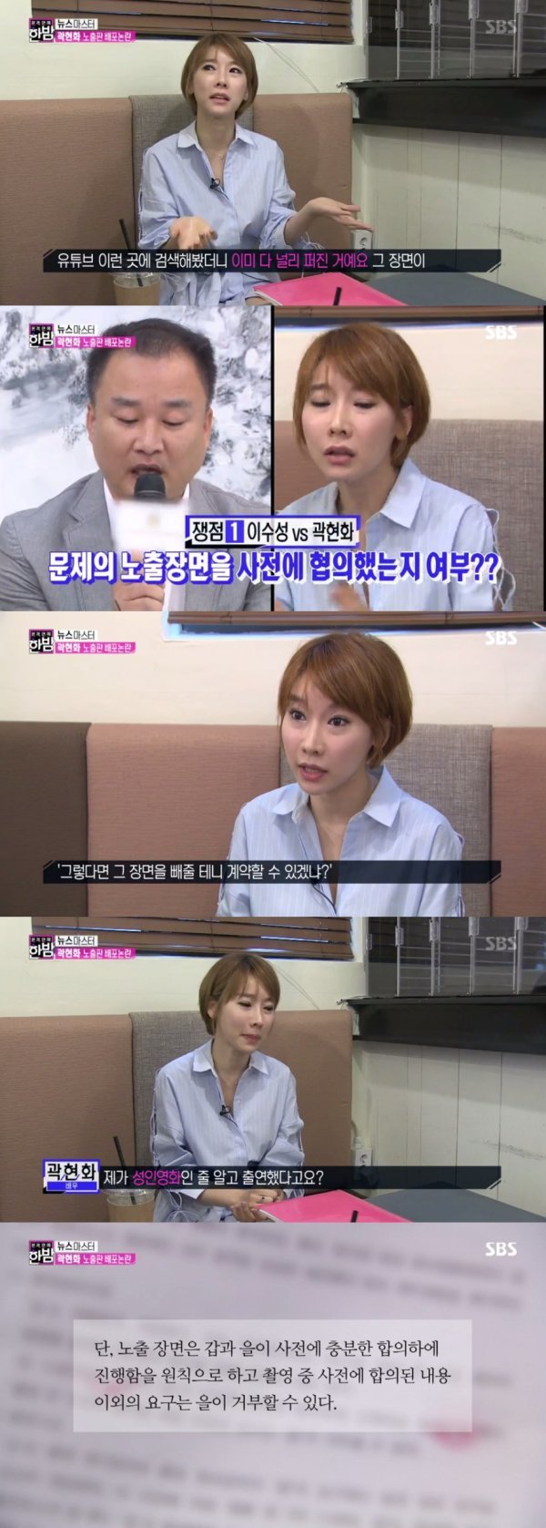 SBS 연예정보프로그램 ‘본격연예 한밤’(이하 ‘한밤’)에서는 노출 장면을 두고 3년 간 공방을 벌이고 있는 곽현화와 이수성 감독의 입장을 전했다.