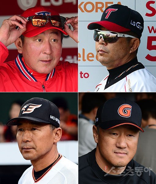 KIA 김기태 감독, LG 양상문 감독, 롯데 조원우 감독(왼쪽 상단부터 시계방향으로)은 2017시즌을 끝으로 계약이 만료된다. 한화 이상군 감독대행(좌측 하단)은 감독 승격 여부가 걸려있다. 이들 감독의 행보는 후반기 눈여겨 봐야 할 포인트 중 하나다. 스포츠동아DB