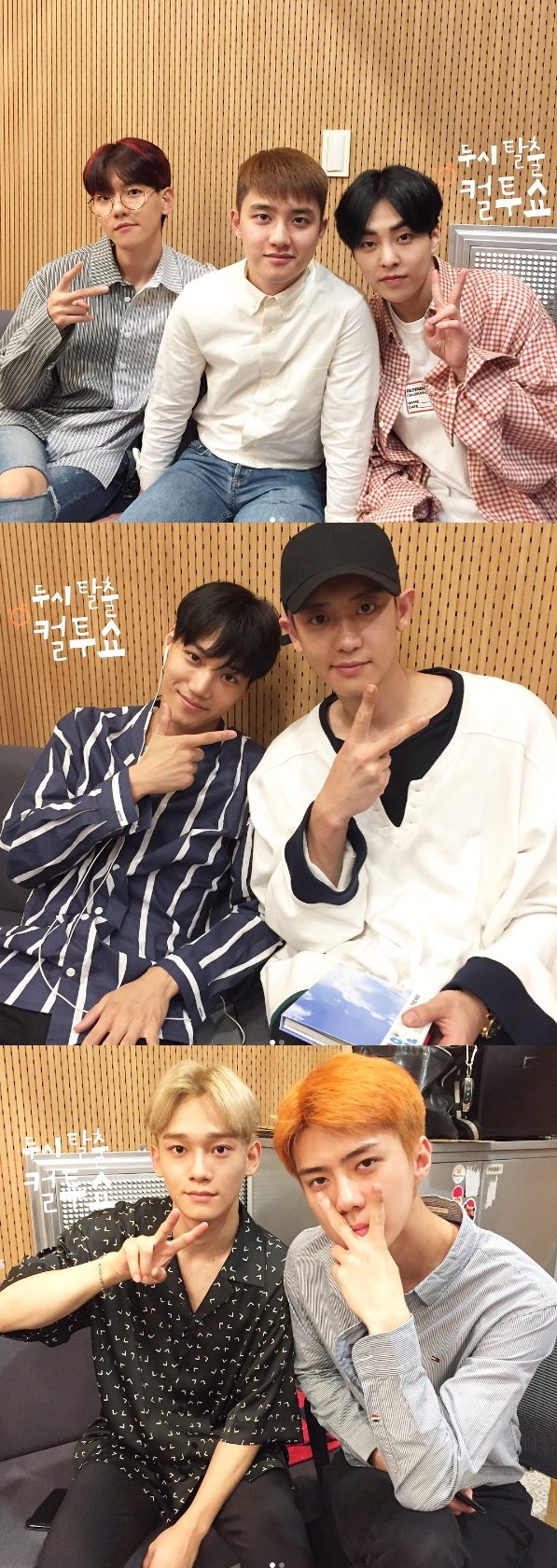 19일 SBS 파워FM \'두시탈출 컬투쇼\' 공식 인스타그램에는 “내가 누울 자리는 여긴가 보다”라는 글과 함께 게스트로 출연한 엑소의 사진 여러 장이 공개됐다.