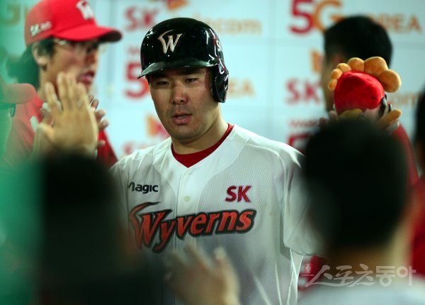 19일 인천 SK행복드림구장에서 ‘2017 타이어뱅크 KBO리그’ SK 와이번스와 두산 베어스의 경기가 열렸다. 6회말 1사에서 SK 이재원이 두산 김성배를 상대로 좌월 솔로 홈런을 쏘아올린 뒤 동료들의 환영을 받고 있다.