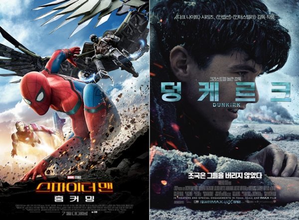 한편, 오늘 개봉하는 영화 ‘덩케르크’는 오전 6시 12분 기준 예매율 46.1%로 전체 1위를 달리고 있다. 천만 감독 크리스토퍼 놀란 감독의 연출작 ‘덩케르크’가 ‘스파이더맨: 홈커밍’을 어느 정도의 격차로 밀어낼지 관심이 모이고 있다.