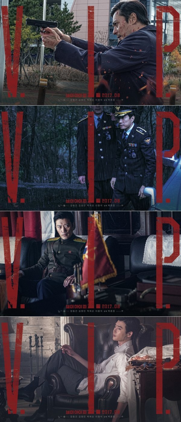영화 ‘브이아이피’는 국정원과 CIA의 기획으로 북에서 온 VIP가 연쇄살인사건의 용의자로 지목된 상황에서 이를 은폐하려는 자, 반드시 잡으려는 자, 복수하려는 자, 서로 다른 목적을 가진 네 남자의 이야기를 다룬 범죄드라마. 1차 예고편 누적 조회수가 약 520만을 돌파하는 등 공개하는 콘텐츠마다 뜨거운 반응을 일으키며 지금껏 한국 영화에서 보지 못한 비주얼로 관객들을 매료 시키고 있는 영화 ‘브이아이피’가 4인 캐릭터 포스터를 공개한다.