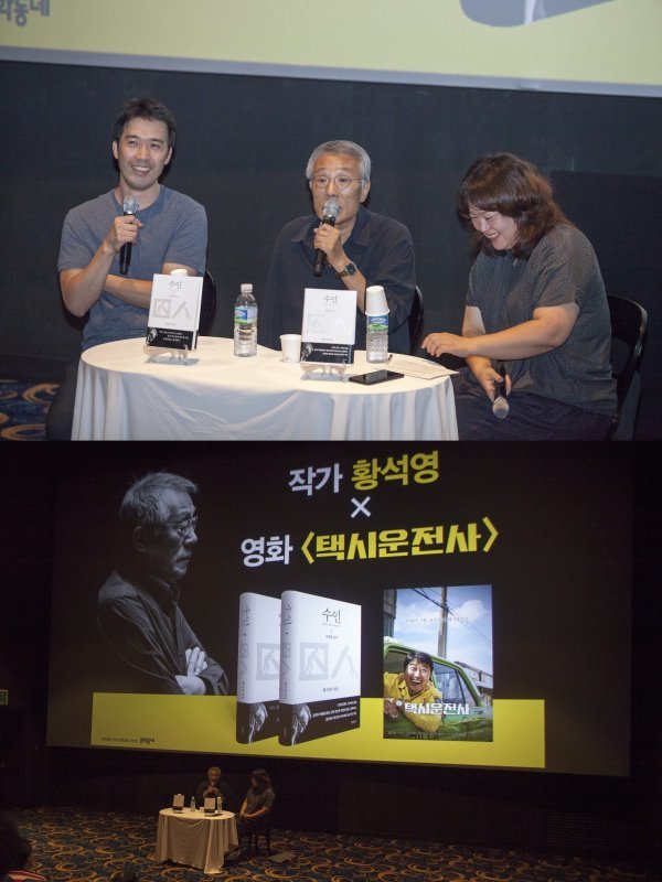 7월 18일 롯데시네마 합정에서 씨네21 이다혜 기자의 진행 하에 한국 문학의 거장, 황석영 작가와 ‘택시운전사’의 연출을 맡은 장훈 감독이 영화는 물론, 모티브가 되었던 현대사에 대해 관객들과 심도 깊은 대화의 시간을 가졌다.
