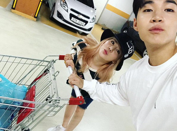 공개한 사진은 헨리와 걸그룹 소녀시대의 멤버 써니가 함께 마트 카를 밀고 있는 모습. 사진 속 써니는 블랙&화이트 스트라이프 티셔츠와 검정 벙거지 모자, 그리고 흰색 스니커즈를 매치해 귀여운 꾸러기 룩을 완성했고, 헨리 역시 검정 글씨 프린팅이 들어간 흰 상의를 매치해 써니와의 커플룩을 완성했다.
