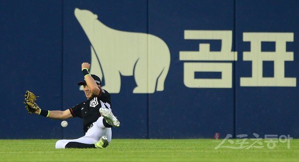 20일 서울 잠실야구장에서 ‘2017 타이어뱅크 KBO리그’ LG트윈스와 kt위즈의 경기가 열렸다. 3회말 2사 1루에서 kt 좌익수 이대형이 LG 백창수의 타구를 잡기 위해 몸을 날렸으나 놓치고 있다.