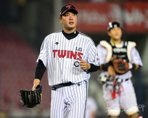 20일 서울 잠실야구장에서 ‘2017 타이어뱅크 KBO리그’ LG트윈스와 kt위즈의 경기가 열렸다. 5회초 1사 만루에서 LG 선발 류제국이 강판 당하며 아쉬워하고 있다.